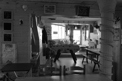 Il y en a de petits détails qui rendent l'ambiance à un espace, une salle atypique suédoise à Paris, regardez les cafetières, à l'arrière, la cuisine...